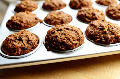 My mom makes muffins by grabbing ingredients, throwing them into a bowl, and mixing/tweaking until she thinks they’re right. But I nailed her down and made her record the quantities so I could share the recipe with you. Still, feel free to tweak and make them your own: Add more banana, applesauce, molasses, etc, to your taste—or change up the nuts you use (sunflower seeds would be yummy.)