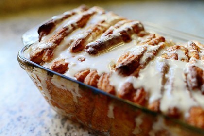 I decided to pour on the same icing I use for my cinnamon rolls, which is powdered sugar, melted butter…