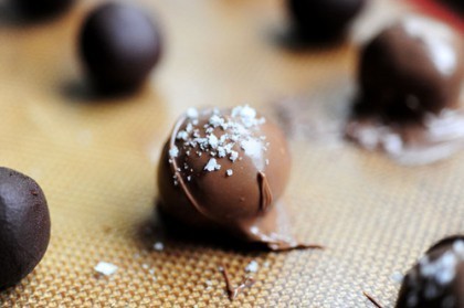 I also made these Chocolate Mint Truffles, which are a variation of these Sea Salt Truffles I posted a few years ago. I just added a little mint extract to the chocolate filling, then colored some coarse sugar with a tiny bit of green food coloring and sprinkled it on top for fun.