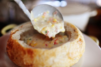 And, because I really needed something salt: Corn and Cheese Chowder. Ridiculously yummy. Serve it in bread bowls, serve it in regular bowls…doesn’t matter. Just serve it.
