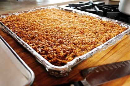 And finally, granola. Granola, granola, granola. I have not done this recipe as a step-by-step here on PW Cooks, and will try to do it in the next week or so. (The photo above is obviously before the granola was cut into bars.) It’s so delicious, so crunchy, so flavorful, and here’s what I do on the show: