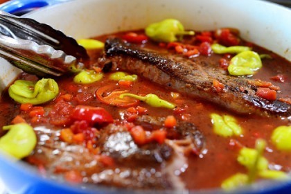 This is a yummy play on the old drip beef recipe my friend Hy shared with me years ago, and I made it last week as I was using up some pantry items as part of my pantry purging process.