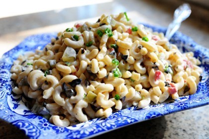 Here’s what I do like: Macaroni salad with a confetti of wonderfulness coloring the whole mix with flavor, spice, and texture.