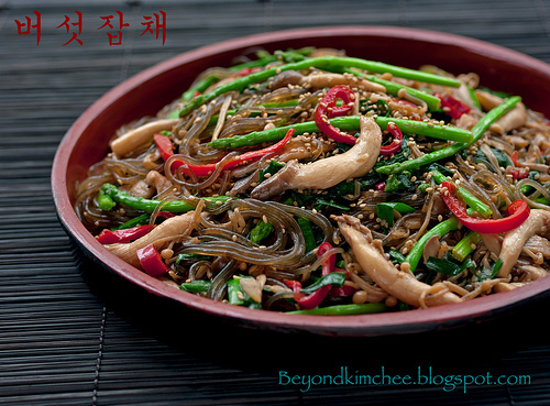 Mushroom Asparagus Japchae by Beyond Kimchee.
