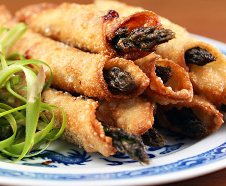Asparagus Wonton Wraps with Hoisin, Wasabi or Mustard Filling by The Perfect Pantry.