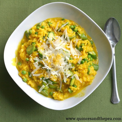 Asparagus, Pea, and Saffron Risotto by Quinces and the Pea.