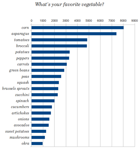 Our good friend Statistician Don compiled a list of our favorite vegetables. Here they are.
