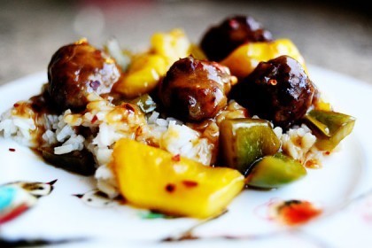 Return skillet to high heat, then dump in the shrimp with the sauce. Cook, stirring only occasionally, until shrimp is opaque. Add in a little water if the sauce gets dry. Remove from skillet and chop into bite-size pieces.