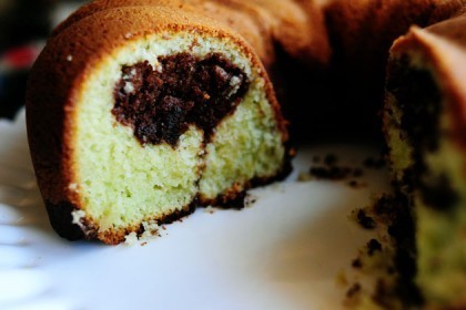 And that's it! Nothing fancy at all. This makes for a nice, moist bundt cake. I will say that the flavor of the pistachio pudding is quite faint; if I had some pistachio extract, I would have added a drop or two. Still yummy though!