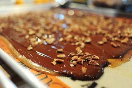 Next, pour in some finely chopped pecans.