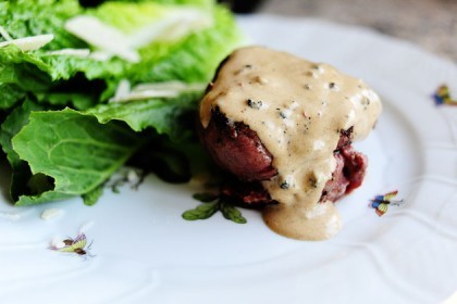 And drizzle on some of the peppercorn sauce.