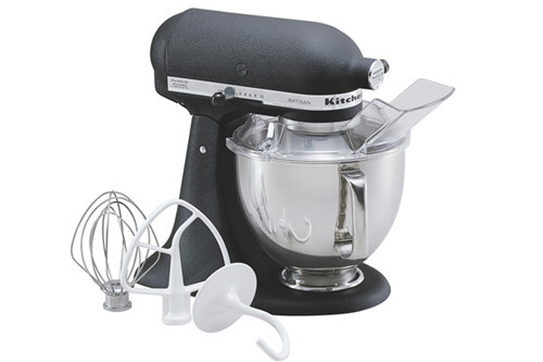 Because Father's Day is less than a month away, today I'm giving away three (3) KitchenAid Artisan Stand Mixers in this industrial (read: not shiny and red) "Imperial Black" color. It's masculine and manly…but don't let that dissuade you womenfolk from entering! It works just fine for chicks, too.