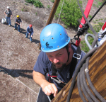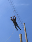 The afternoon events were much more challenging because they involved harnesses, ropes, helmets, and belay lines. The high elements were essentially trees were telephone poles lashed together with ropes and safety lines while everyone was attached to a watchful instructor. The final element was what they called the "pamper pole".