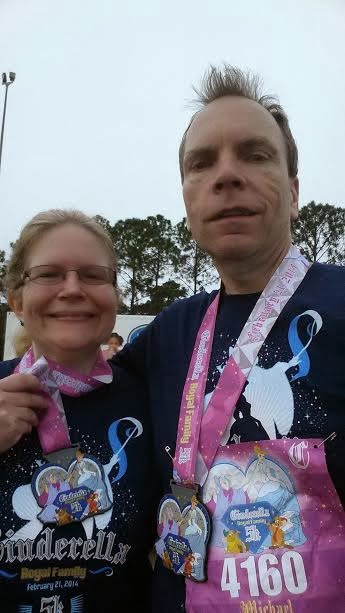 I successfully completed my first 5K race on February 21, 2014! The Cinderella Royal Family 5K in Disney World.I had seen an advertisement for it in a running magazine the previous Spring. I talked my athletic husband (he's a bicyclist) into running it with me. Well, not exactly with me. He has a faster time, so he was in a different corral.