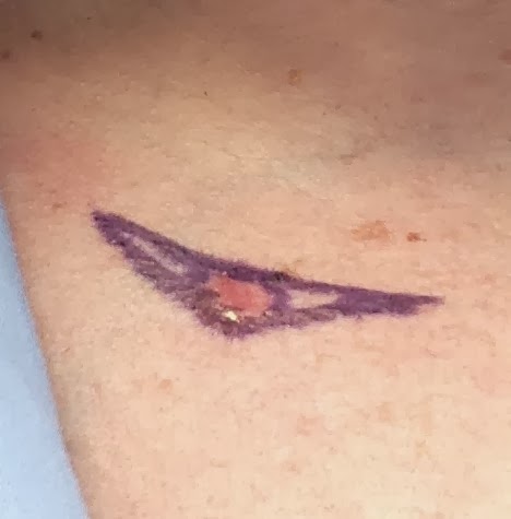 The scar from my skin biopsy last summer morphed into something which spooked my dermatologist so she excised it today. Ten stitches in my chest. But no halo. I've been told I'm a dermatologist's worst nightmare because I had the rarest form of Melanoma in 2005. It had no pigment in it and it's an amazing miracle my gynecologist nurse practitioner wanted it checked. Every six months I have a full body skin exam and anything interesting gets sent to the pathologist. For what it's worth, I've always been careful about the sun, slathering on sunscreen and waiting until after 4 PM to take the kids to the pool. I've never had a tan nor been to a tanning salon or used artificial tanner. And I am a skin cancer survivor. My beautiful non-smoker sister died of lung cancer in November, so we are proof that risk factors have nothing to do with carcinoma.