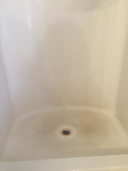 Our one piece low budget builder installed master bathroom shower stall is 14 years old. We've tried everything to get the grimy soap scum off of it, even boat cleaner. I thought we'd have to rip it out and either replace it or tile it.