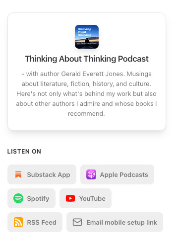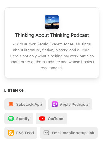 If you’re a paid subscriber to Thinking About Thinking, you may find it’s more convenient to listen to our audiobook episodes on your favorite podcast app - including Apple Podcasts, YouTube, Spotify, and any app that can use our RSS feed. To access releases via your app, go to the Podcast tab on this site and then click the app you want to use from the icons shown on the right of the episode listings: