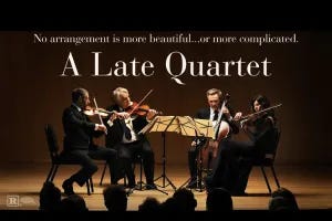 In A Late Quartet, the second violinist and the violist are married to each other. The violinist is having doubts about his playing, which leads a brief affair with a dancer. The arrogant first violinist is giving music lessons to his colleagues’ talented daughter. He betrays his bond to them by allowing the girl to seduce him. Again, it’s all about trust and cooperation, sometimes in spite of the underlying truth.