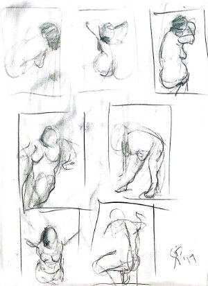A sheet of quick gestural drawings. Rather like automatic writing? You could get those impressions on paper almost before you know you have them.