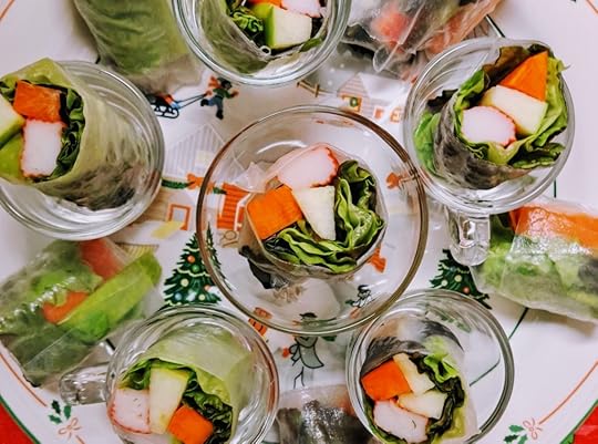 I was invited to lunch at a friend’s house, and that was an adventure of a different kind — a culinary adventure spanning the gamut of Asian countries. First we had an appetizer of vegetable rolls — various vegetables wrapped in edible rice paper and dipped in a wasabi sauce.