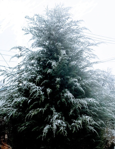 Last night was a treat, a real adventure, short though it may have been. We got a huge amount of snow, and it was COLD! The women I work for wanted to drive me home, and were almost insistent, so I agreed, but when I got outside, I simply could not forgo the small adventure of walking home in the crackling cold. The temperature was close to zero, and what appeared to be a few flurries of snow was actually the humidity in the air freezing.