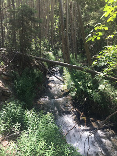 was made enjoyable by the shade of the forest and accessibility of the creek. The slope of the trail was moderate, but above the meadow the trail turns steep with switchbacks and moves away from the creek and becomes hard.