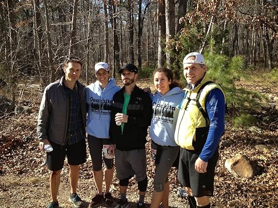 Jason, Amy, Mikey, Ginger, and me at the finish lineThe alarm went of at 2:45 a.m. Saturday morning. Within the hour I joined Amy Nash, Ginger Becker, and Mikey Whittiker in Jason Smith's FJ Cruiser. We were headed to the intersection of Highways 59 and 259 in Eastern OK for the second running of the