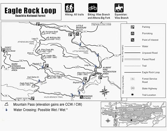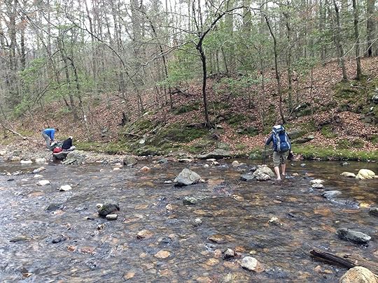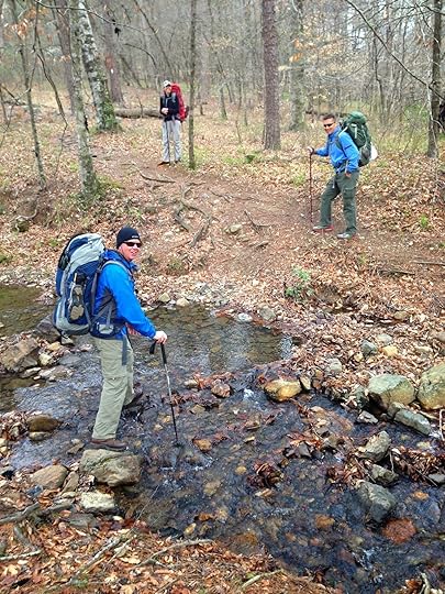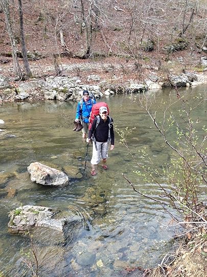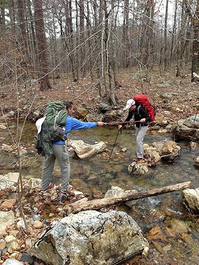 Our first water crossingOn April 4-6 of this year, three friends and I hiked the 28.6-mile Eagle Rock Loop Trail in Arkansas. I had heard of the trail from my trail running community, NTTR, and we needed some training and outdoor fun as part of our preparation for our big summer adventure. (More about that at another time.) This was my second AR adventure in the past four months, (See the Ouachita Switchbacks report.) and I am liking the closeness and variety the AR trails offer.