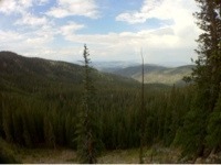 It rained, and the trail had several washouts and fallen trees. Altitude was a problem going out (Ditch Cabin is 9,730) but coming back was ideal. Cool, soft trails, and my breathing fell back in pace.