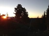 Sunrise at Lost LakeWe rose at sunrise to a windy, crisp morning. We boiled water for coffee but did not eat freeze dried goodies that morning. We broke camp and headed to Wheeler Peak.