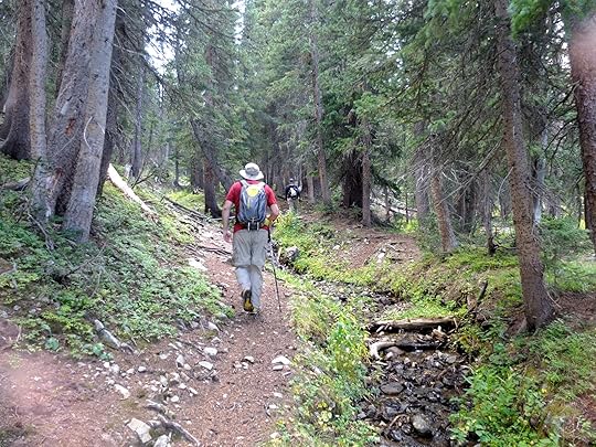 Along the Lost Lake TrailSurprisingly, NO ONE was at Lost Lake when we arrived. (The same was true the next day at Middlefork Lake. And, those at the Peak were all but one group from Taos.) This is high season for hiking and camping in the region. Where was everyone? My hunch is that hiking and camping is too hard and troublesome for most folks. Goose Lake, which is open to four wheelers and jeeps was packed. That sort of trip fits our lazy, mechanized American lifestyle. I prefer the motor of our bodies and exhaust of our breathing to get us to where we are going in Creation.