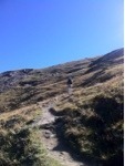 The standard return to our camp was six miles right back the way we came. Which meant back down to the saddle, back up Red Cloud and then 5 miles of switchbacks to the trailhead. We had read that there was a "short-cut" that saved a mile and avoided re-summitting Red Cloud. Only issue was the guide said it was not recommended and considered dangerous. The only intelligent choice was to take the standard route back. Only problem was we only had two intelligent people in our party - Gene and Jack, who did not hesitate and started back up Red Cloud, despite being throughly spent. Jason, Jon and I decided to try the maligned short-cut. There was some hint of trail and some we made up. For an hour we picked our way across and down a steep and wide slope of talus (loose, jagged rock that often slides away when you put weight on it). We were feeling pretty good about our choice (we could easily see Gene and Jack trudging up the return to Red Cloud) until we found ourselves on top of a 60 foot cliff with no obvious way down. We saw a chute that looked promising (read: only kindof suicidal) and started scooting down on our rear ends. Jason put his feet on some talus and started a slide toward the cliff face. A slide in which he remained a key component. Jon and I decided to reverse course and scrambled back to the top. Jason's head peaked above the rim a few minutes later. He didn't look happy. Frankly, he looked like he might have soiled himself. For the record, I don't think he did. Though after 5 days in the wilderness we all smelled a bit "seasoned" so I can't be sure. We found another route that had sufficient hand-holds and foot-holds to get us to a point where we only had to climb down a sheer vertical face of maybe 10-15 feet. Once back on reasonably horizontal ground we all were unanimous in declaring our decision to take the short-cut INSPIRED and our cliff climbing experieince, AWESOME!