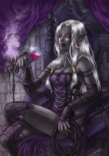 Today's picture is of a Drow. Drow are dark-skinned elves that live underground. In Champion of Valor, they tend to be all about themselves and often clash with their underground neighbor, the dwarves.