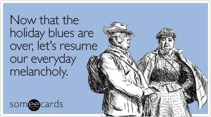 I don't know about you, but I always feel a little depressed after all the hoopla of the holidays are over. Maybe it's because the house seems so much smaller and quieter with all the relatives gone. Or the cleaning up the house and tripping over all the kiddies new toys. Or no more listening to Christmas music 24/7 until next Black Friday.