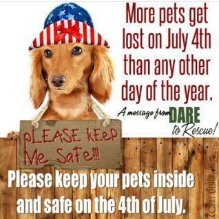 I have heard that the busiest day for Animal shelters is July 5th as there are so many displaced pets who have run away or bolted in fear. Keep your pets safe. Make sure they have on collars with ID and are microchipped. Use doggy downers if you have them. In this case it is ok to say YES to drugs! Music or television might help mute the sound and the fear. I would not suggest the 1812 Overture, however!