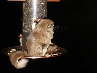 One morning I was late with the squirrel feeder seed and the bird seed. I slept in until almost eight—yeah "slept in" means different things at different ages, huhn—so, this bird kept screeching outside my window, "GET UP! GET UP! GET YOUR LAZY ARSE UP!" I stumbled to turn on the coffee, and in my robe and slippers, went out to feed the critters. There was a little red squirrel sitting on top of the sunflower seed can, eyeing me pitifully as if to say, "YOU LAZY ARSE! FEED ME FEED ME!" He jumped to the side when I opened the can, and then proceeded to hang on the edge, looking down into the can in a, "Hurry it up, woman," I said, "Well, geez, give me a chance . . ." Then he followed me across the railing as I deposited King Squirrel's breakfast upon its throne. Geez. It looked at me as if to say, "GMR would NEVER sleep in. He delivers our victuals promptly."