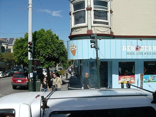 The tour continued and we wound our way through Haight and eventually came to the famous intersection of Ashbury. There's a Ben and Jerry's ice cream store on the corner, with a slogan that stands as a tribute to the summer of love.