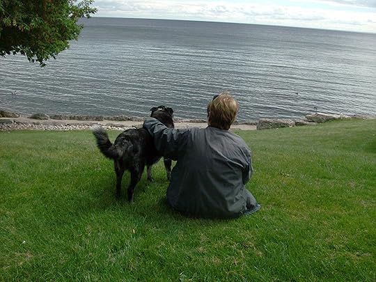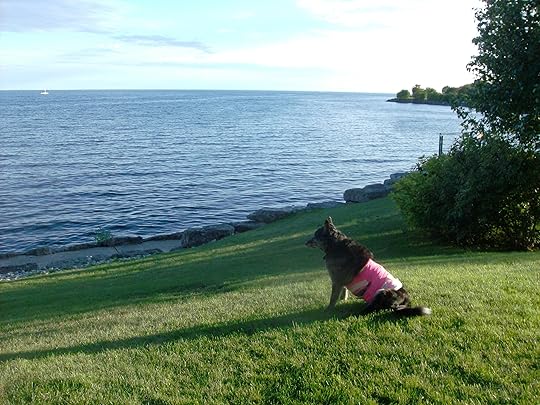 So today we sat out back, Dolly and I. I marked a few papers and she gazed at the lake, enjoying the light breeze that ruffled her fur.