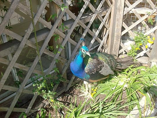 This peacock has only one display feather left. He'll grow more by next spring when mating season comes around. I especially liked the crest on his head. A fascinating bird.