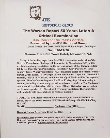 At: Crowne Plaza Old Town Hotel, Alexandria, VA. 901 North Fairfax | Alexandria, VA 22314Many of the leading experts on the JFK Assassination and critics of the Warren Commission findings will be meeting in Washington D.C. on this weekend, to give presentations on the various aspects of this topic.