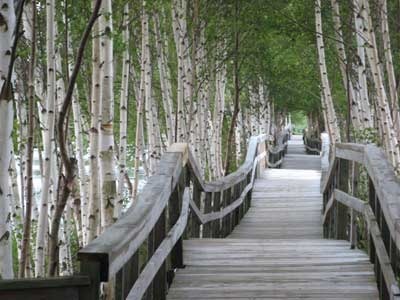A walkway wending through the waterfowl sanctuary in the Tantramar Marsh near Struts Gallery, Sackville, New Brunswick, Acadia, Arcadia, Nova Francia. Photo: J. R. Carpenter, 2009