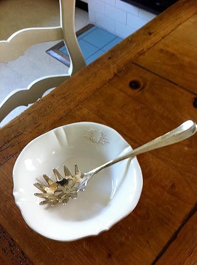 And then there was this pre-loved silver-plated spaghetti server. At $7, I felt it would add a touch of luxury to the simple pasta meals we share around the farmhouse table. (Must beg Cathleen to make me some of the awesome spaghetti sauce she learned to make from her Italian father-in-law. It's truly deserving of a silver server!)