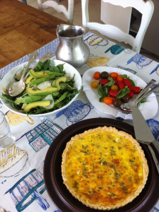 Okay, so I might have left this particular cheese and caramelized onion tart in the oven a tad too long and the pastry shrank—but my lunch guests (some writer friends) did not complain. We enjoyed talking about our latest works-in-progress—and of course I showed off my tin with the holes in the base and graciously accepted all compliments.