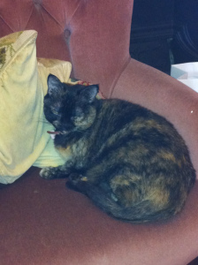 In my study, I have two identical chairs covered in a dusky pink fabric. They've come with us through various moves and don't fit in any other room in this house. Two of my cats, Ancient Albert (twenty and a half years of age) have taken to choosing a chair each to keep me company as I write. Maybe they think that acting as feline muses I might include more cat characters in my dog-character predominant books. Who knows?