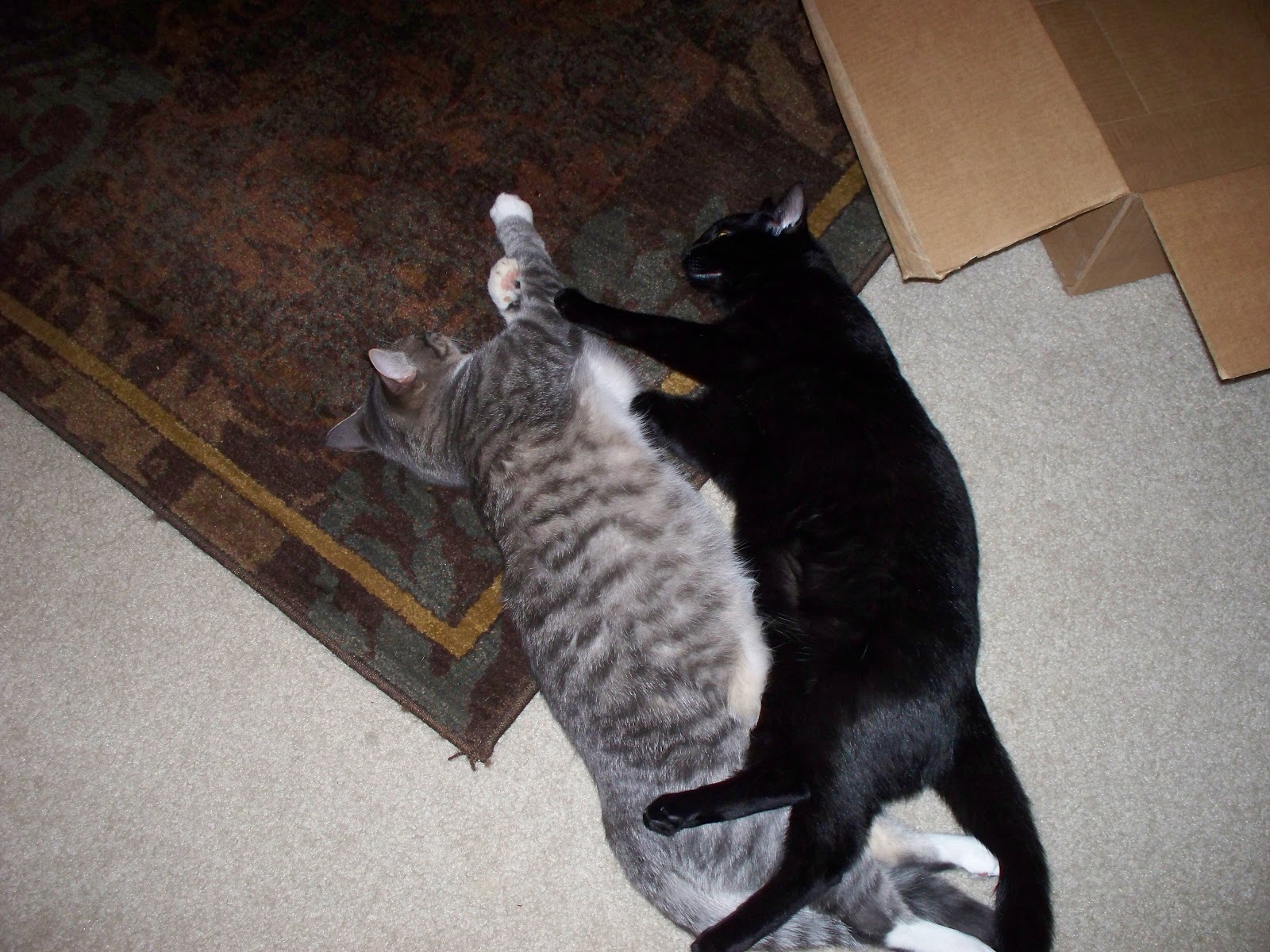 JC and I are prepping for the holidays, and yesterday, we had boxes scattered all over the living room. Ashes and Cinders both LOVE boxes, and they ran over them . . . inside them . . . through them . . .