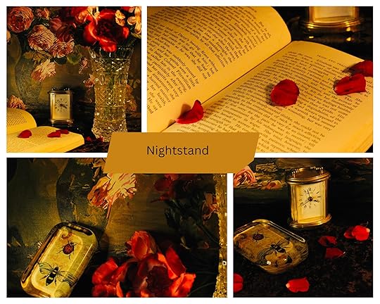 “Opening the door on the lower shelf, she pulled out a nondescript book. She lifted the cover to reveal a small square compartment hollowed out in the false pages and pulled out a tiny gold key.”