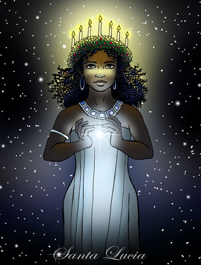 sent me a beautiful card her friend made, of Santa Lucia--Saint Lucy, with her candle crown: