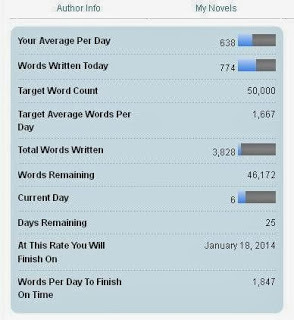 Di situ dibilang dengan kecepatan menulis saya yang seperti kura-kura ini, saya baru akan menyelesaikan NaNoWriMo di bulan Januari 2014. He-heh..Tapi saya masih semangat kok! Saya akan terus mencoba hingga tetes keringat terakhir.