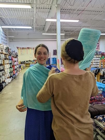Shopping for fabric with our friend Janessa for my America’s Next Great Author dress.