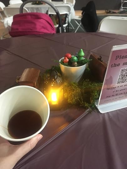 I greeted people as they arrived, directing them to the table where they could get some tea, and then, when most people had arrived, I took my place at the front of the crowd. As usual when I’m public speaking, my nerves vanished instantly the moment I was in front of people, and I felt energized and ready to go.